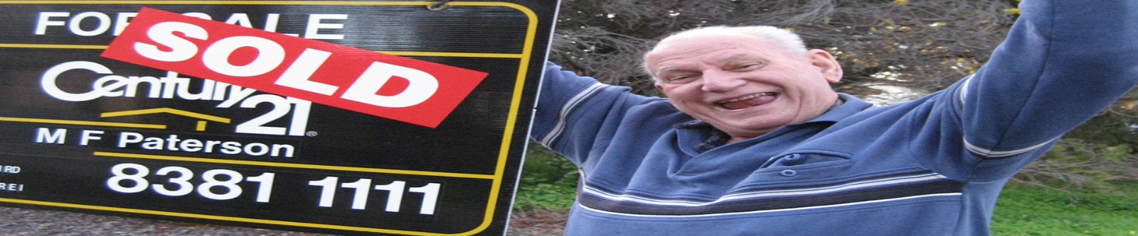 As it turned out, Dad was in intensive care for a few months, and apart from the mail, and caring for ‘Buddy’ (the budgie), and getting clothes, there was not much needing to be taken care of at home. A few years earlier, in typical Dad style, he had downsized, and moved from the family home into his ‘first choice’ retirement village. The picture below is Dad, the day the ‘sold’ sign went up. So when it came to sorting out his things, it was not too difficult.